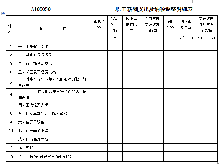 根据企业所得税政策调整和实施情况,对《中华人民共和国企业所得税年度纳税申报表(A类)》(A100000)、《职工薪酬支出及纳税调整明细表》(A105050)、《企业所得税弥补亏损明细表》(A106000)、《境外所得税收抵免明细表》(A108000)、《境外所得纳税调整后所得明细表》(A108010)、《境外分支机构弥补亏损明细表》(A108020)、《跨年度结转抵免境外所得税明细表》(A108030)、《跨地区经营汇总纳税企业年度分摊企业所得税明细表》(A109000)部分数据项的填报口径和逻辑关系进行了优化和明确。